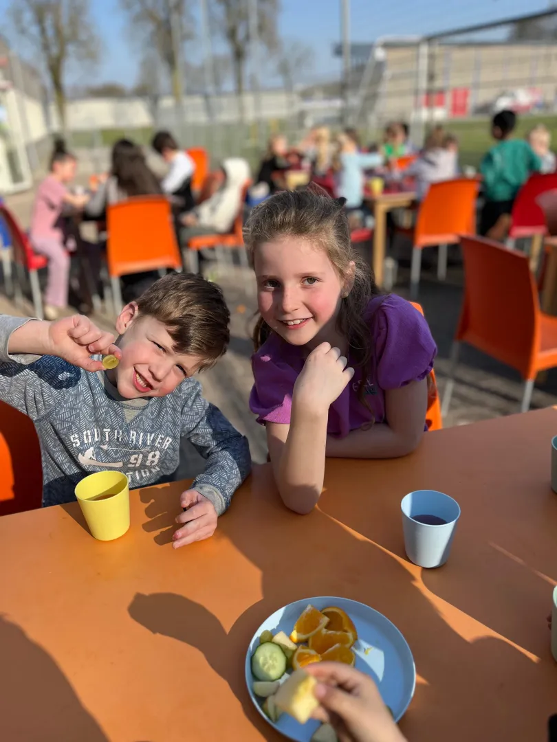 En wat hadden we geluk met het weer! Op de mooie dagen zijn we lekker naar buiten gegaan en hebben we samen ons fruit gegeten in het zonnetje. Dat maakte de dagen extra fijn en gezellig.