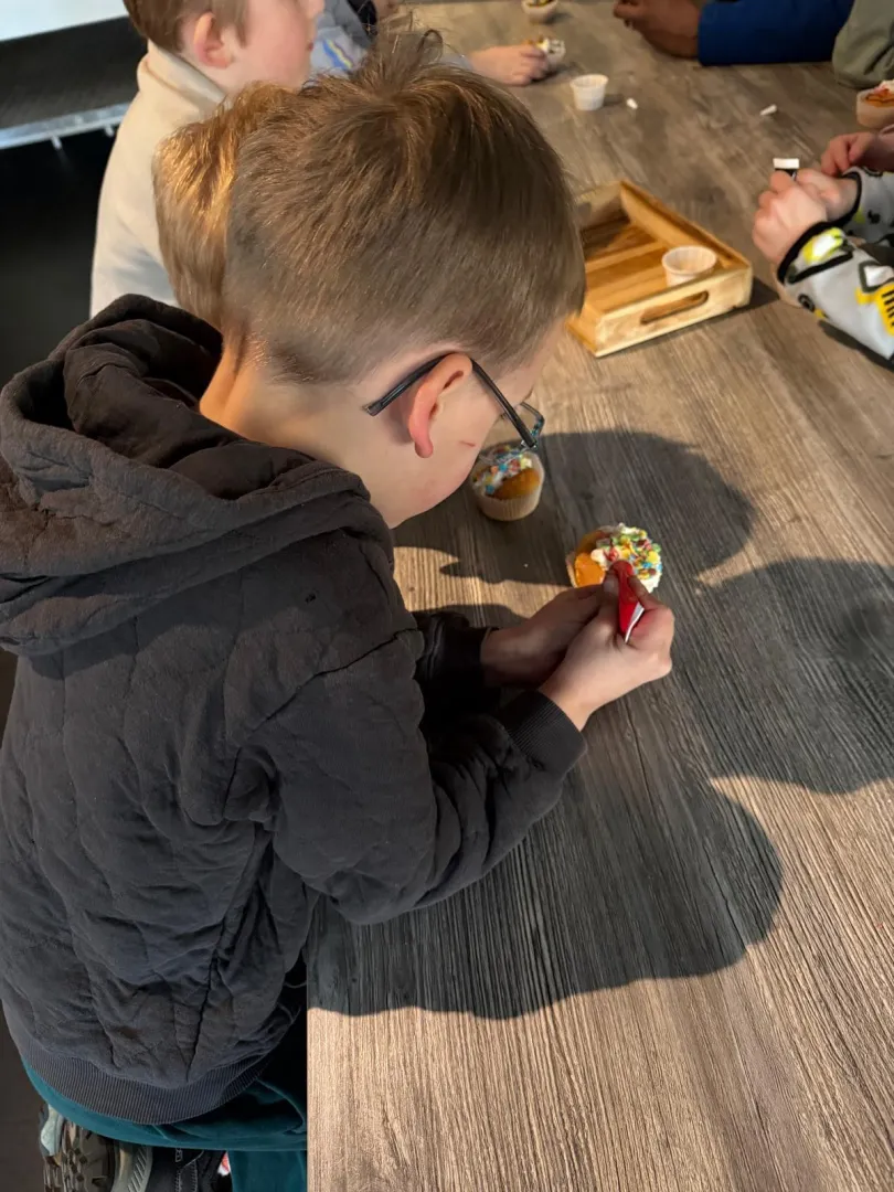 Tijdens de vakantieperiode vingen we de kinderen al in de ochtend op en maakten we er elke dag weer een actieve en gezellige dag van. Naast sport en spel was er ook ruimte voor creativiteit en samen genieten. Zo hebben we cupcakes gebakken en deze met z’n allen versierd. Natuurlijk werden ze daarna ook gezellig samen opgegeten — een heerlijk en leuk moment voor iedereen.