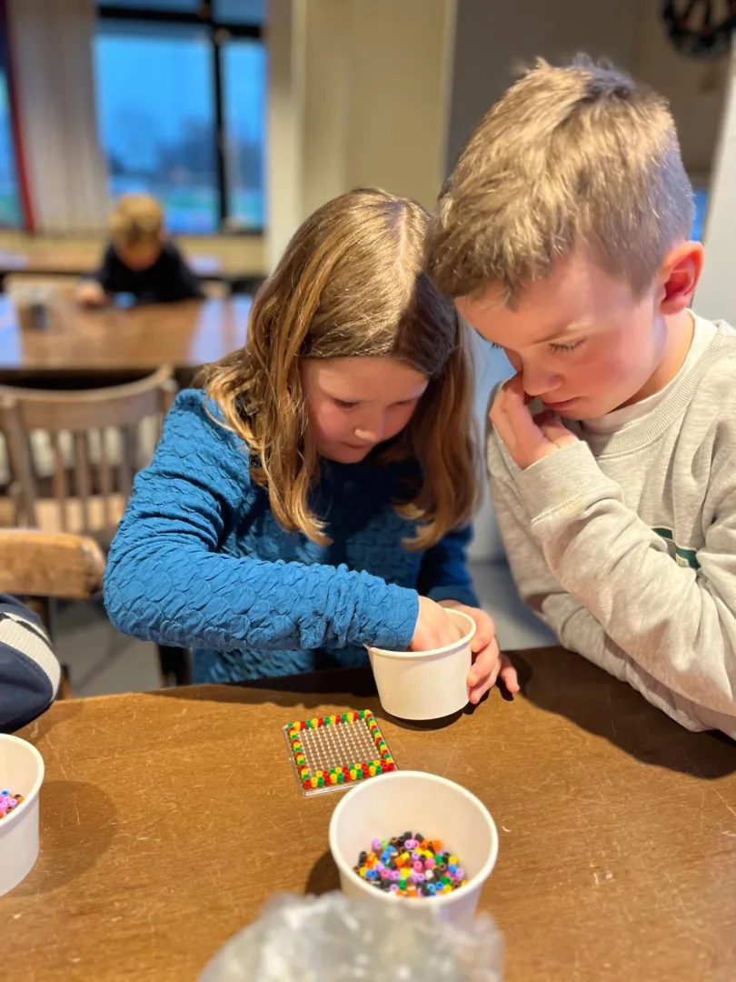 Door het koude weer zijn we met sommige kinderen wat meer binnen geweest. De één speelde een spel, de ander verzon iets creatiefs met strijkkralen. Hierin zijn de kinderen natuurlijk helemaal vrij! 🎨