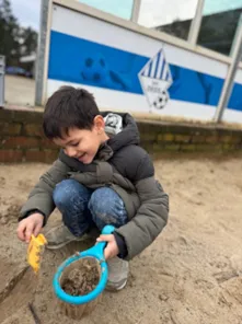 De laatste week van januari bracht wat minder goed weer, maar dat hield ons zeker niet tegen. We speelden onder andere spons/water/vuur, wat groot succes was (en ja… we werden ook letterlijk nat!). Op het einde de dag warmden we altijd gezellig binnen op, waar de mooiste tekeningen ontstonden en er met magnetics prachtige huizen en kastelen werden gebouwd.