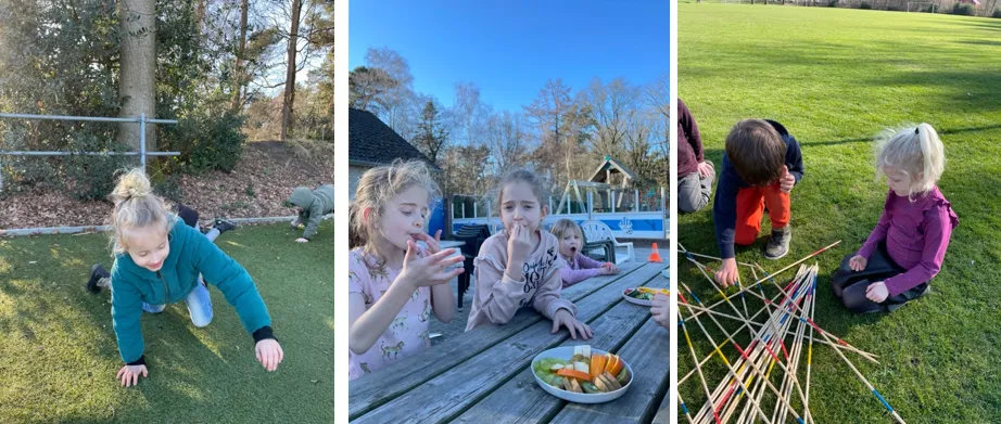 Dankzij het mooie weer konden we zelfs ons fruit en groentjes gezellig buiten opeten aan de picknicktafel, heerlijk genieten in het zonnetje!